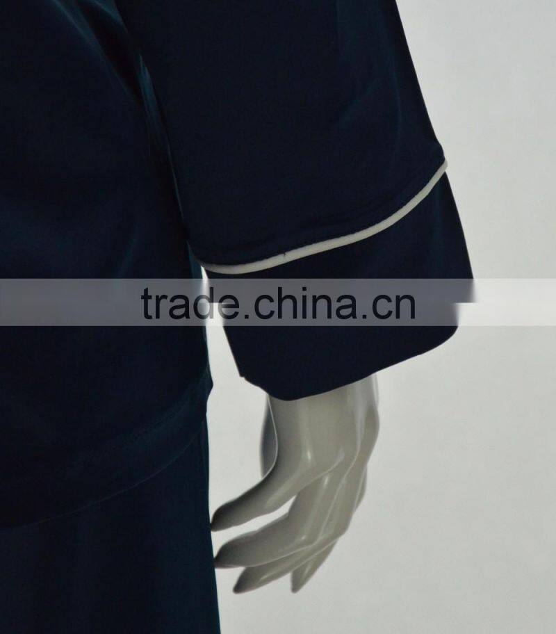 It has many feature: long sleeve,button front top for a classic look,elastic waist for a relaxed fit.