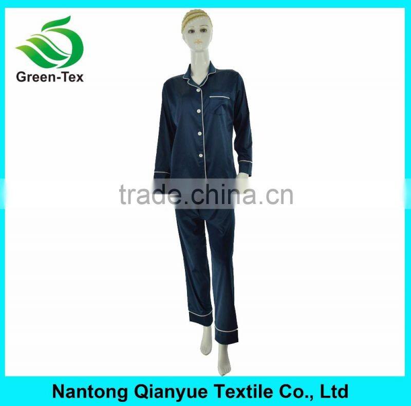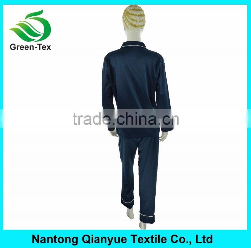 Women Navy Silky Polyester Satin Pajamas Sets