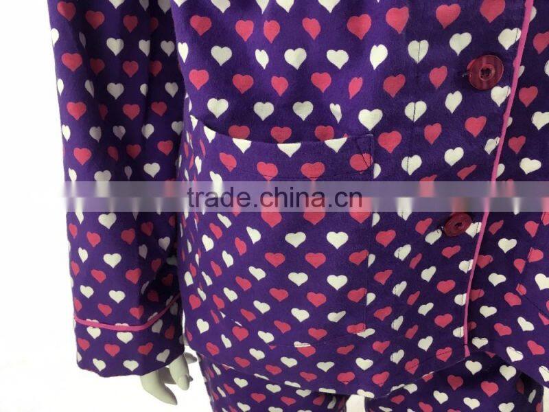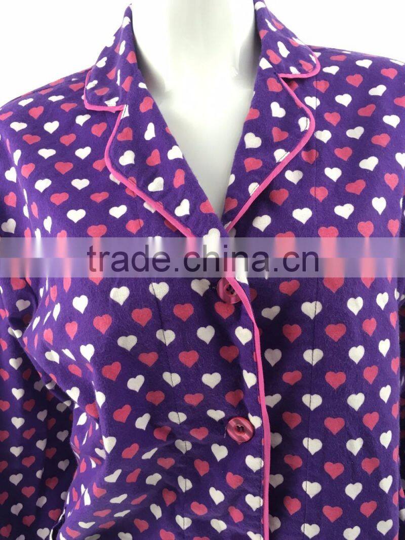 Purple Long Sleeves Flannel Pajamas Women Winter Sleepwear