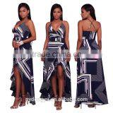 Irregular Check Women Dress /filis v Neck Halter Summer Holiday Beach Dress
