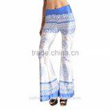 Sky Blue Flower Plus Size Bell Bottom Pants/ Morning xg New Design Flares/ Blue Tree Wide Legging Flare Trousers