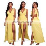 Women Sexy Yellow Dress /filis Split Cutout Sleeveless Summber Holiday Beach Dress