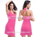 Pink Women Halter Beach Dress/sh wi Fashionable 11 Color Summer Beach Dress