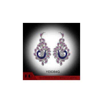 | Item name | Micro Pave And Enamel Craft Zirconia Silver Trendy Peacock Earrings |