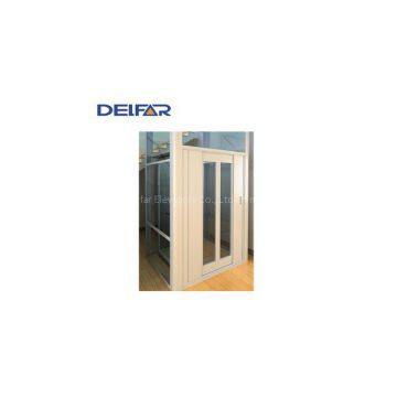 Company Introduction: Delfar Elevator Co., Ltd. is a professional elevator company who designs and manufactures complete elevators, escalators and moving walks, as well as elevator parts. The company covers a land area of over 40,000 square meters with more than 17,000 square meters of factory houses and 3,000 square meters of office area. Currently, 135 employees work for DELFAR, which includes 52 engineering technicians. Company Description: Car ceiling: Hairline st. st. Car wall: Glass Car door: Glass door with hairline st. st. frame Car floor: PVC (optional: marble)