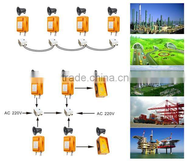 PA5-host call system for offshore oil platforms, oil production wells on land, underground tunnels, shield, steel plants, nuclear power plants, metallurgy, oil refineries, port machinery bridge, shipyards, thermal power, highways, tunnels and other municipal projects ; product waterproof, dustproof, anti-electromagnetic interference, anti-noise, anti-wind and rain, the product passed IP66, CE, FCC, EMC EN50121, TUV, IEC, ATEX certification