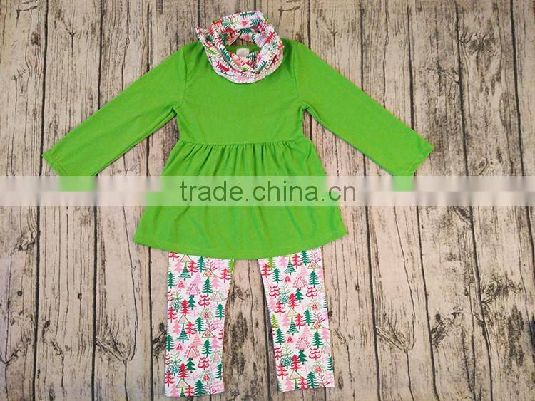 Home > Products > Christmas Products > Yawoo Green Cotton Dress Match Christmas Tree and Scarf 3 Pcs Christmas Set Cheap Toddler Boutique Clothing