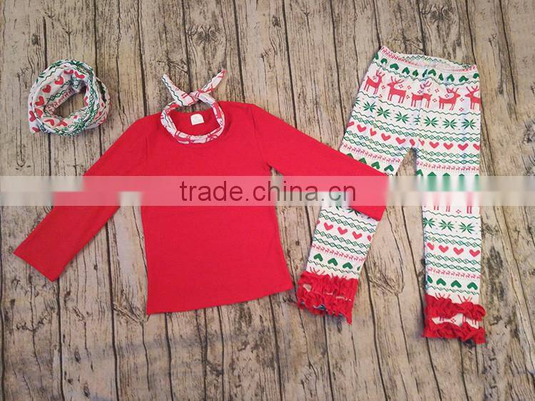Yawoo 4pcs Red Top Deer Pants Match Scarf and Headbands Christmas Cute Baby Girls Clothes Boutique