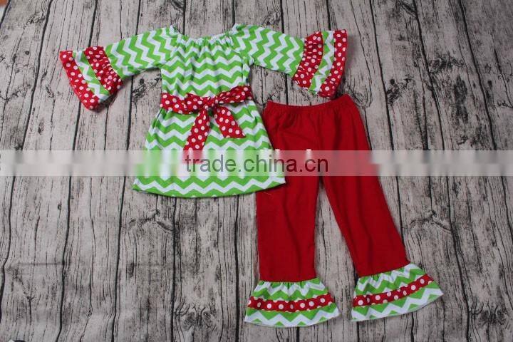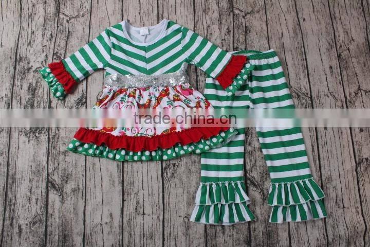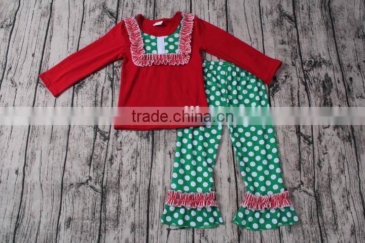 Hot Sale Christmas Style Long Sleeve Cotton Boutique Outfits for Girls Tutu Dress Ruffle Clothing Set Wholesale 2pcs Kids Wear