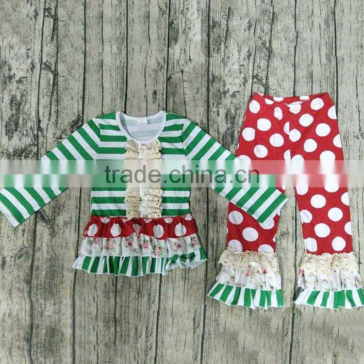 Yawoo Hot Sale Infant Baby Cotton Ruffle Clothing Set Christmas Style Polka Dots Boutique Outfits Xmas Party Kids Clothing Cheap