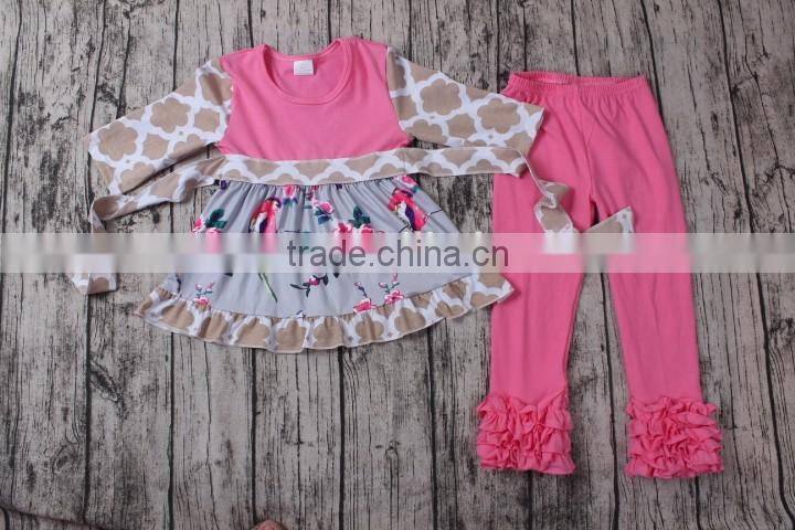 Home > Products > Christmas Products > Popular Style Spring Autumn Long Sleeve Baby Girls Boutique Outfits Pink Birds Print 2PCS Ruffle Tutu Dress Pants Clothes Set