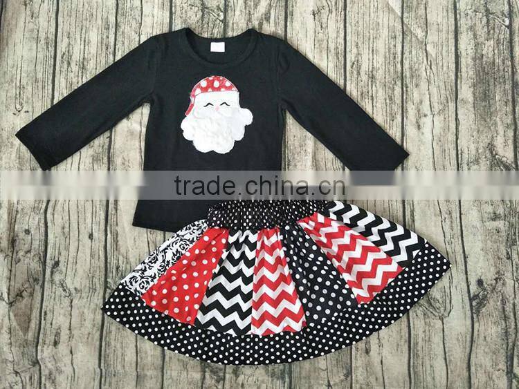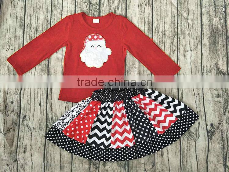 Yawoo 2016 Red Top With Santa Embroidery and Skirts Sets Baby Boutique Christmas Clothing