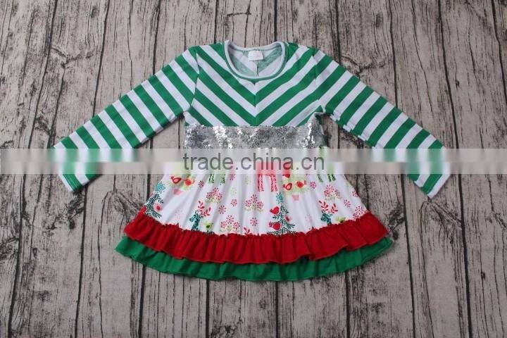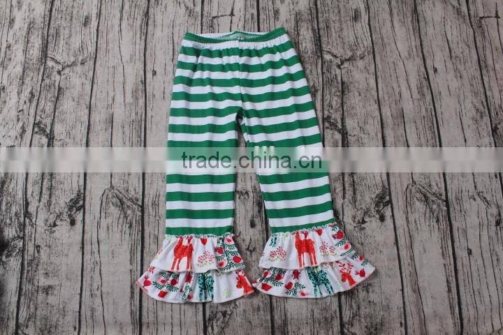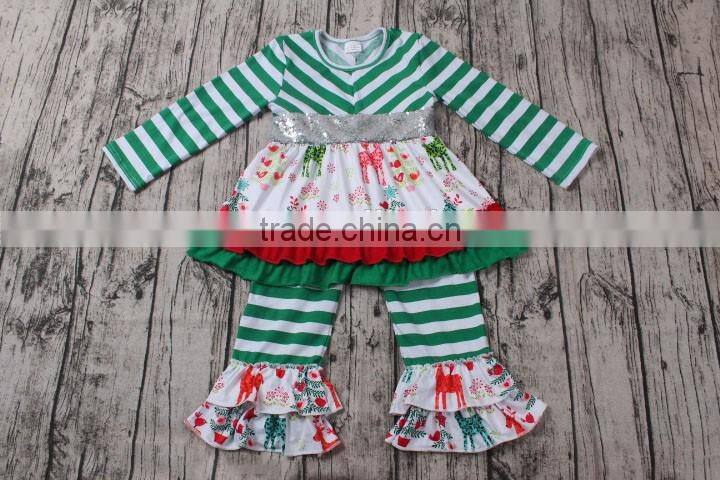2016 yawoo green stripe sequin deer patterns tunic dress and ruffle pants little girls christmas clothes