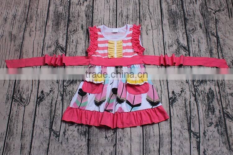 2017 Yawoo Factory Direct Wholesale Clothing Neck Designs Stripe Baby Dress New Style