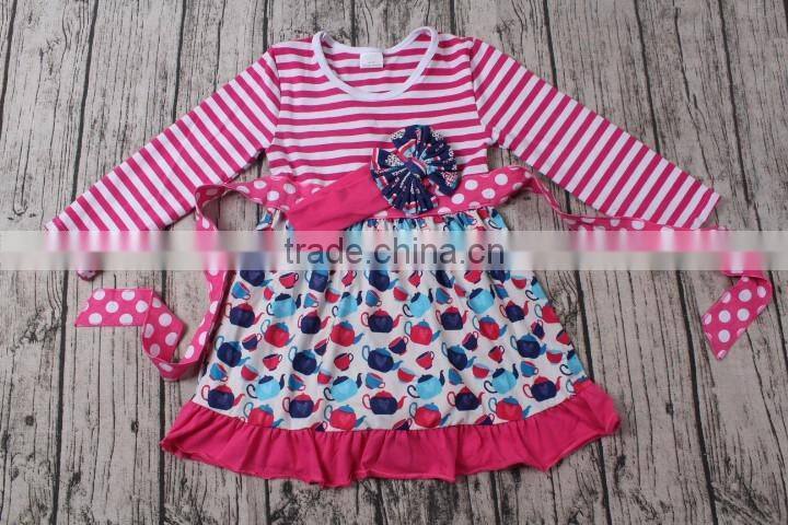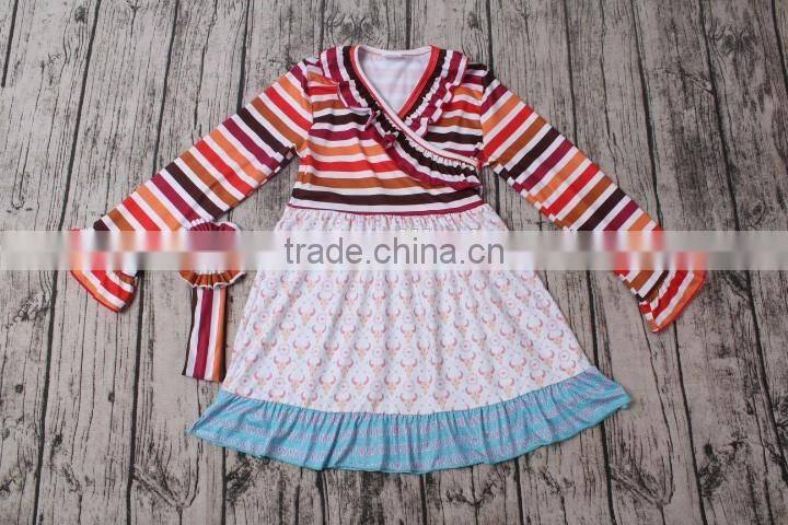 2017 Yawoo Factory Direct Wholesale Clothing Neck Designs Stripe Baby Dress New Style