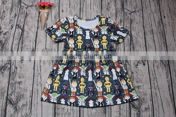 2016 Yawoo Cockhorse Patterns Flutter Sleeve Pearl Casual Dress New Design Kids Dress