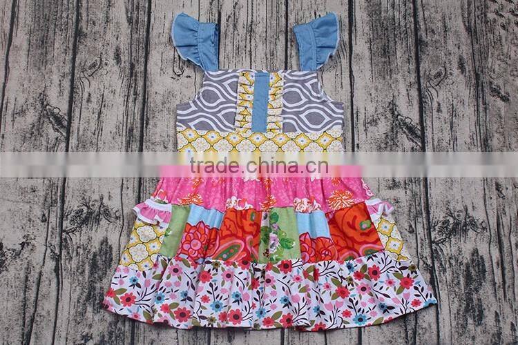 2016 Wholesale Flutter Sleeve Flower Tunic Dress Designer Cotton Dresses for Girls