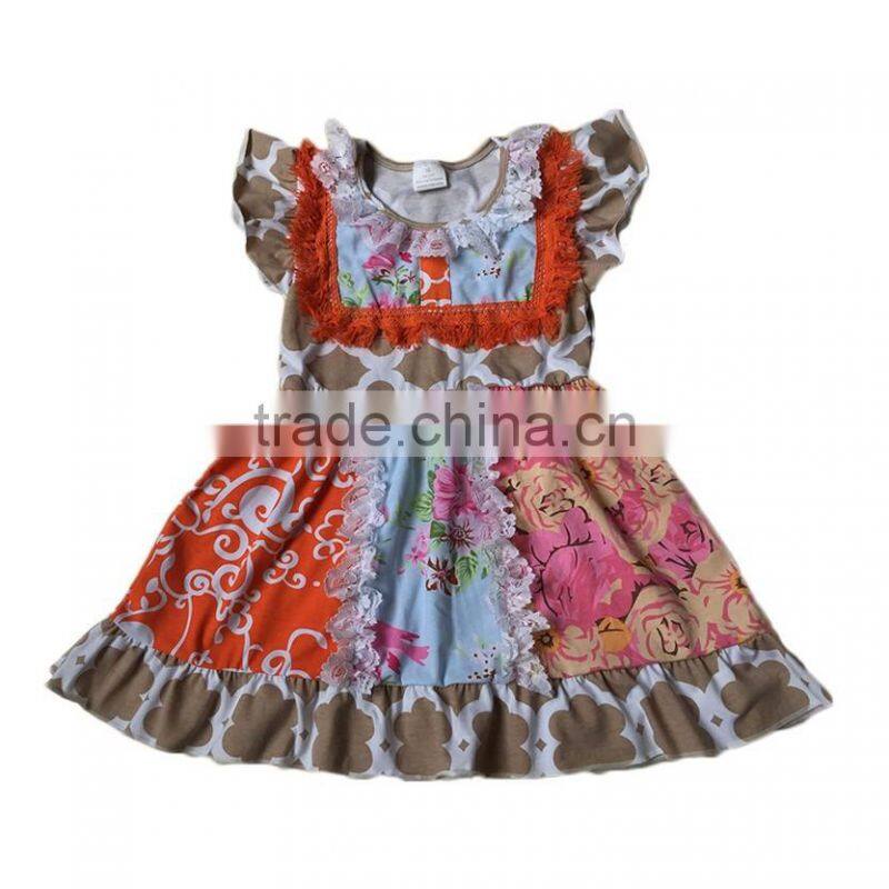 2016 Wholesale Flutter Sleeve Flower Tunic Dress Designer Cotton Dresses for Girls