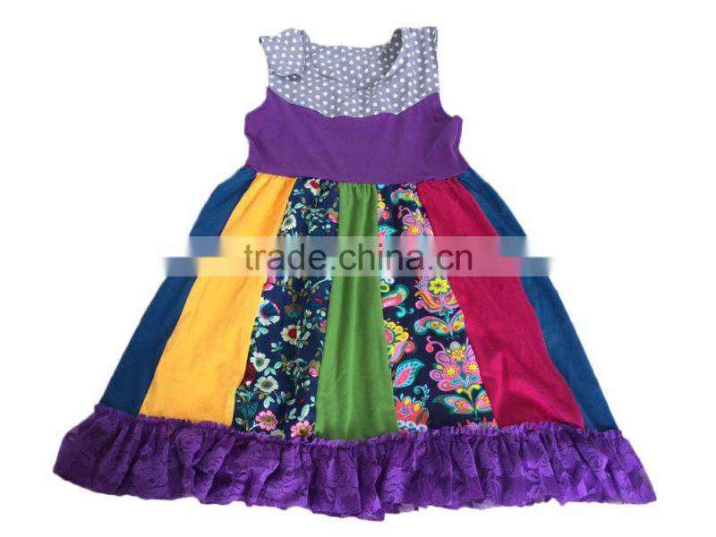 Yawoo Wholesale Purple Ruffle Tank Cotton Summer Dress Children Frocks Designs