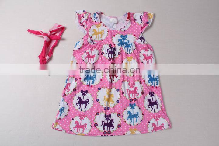 2016 Yawoo Cockhorse Patterns Flutter Sleeve Pearl Casual Dress New Design Kids Dress
