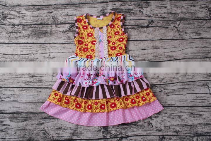 Yawoo wholesale sleeveless ruffle smocked dress baby girl frock cutting pictures