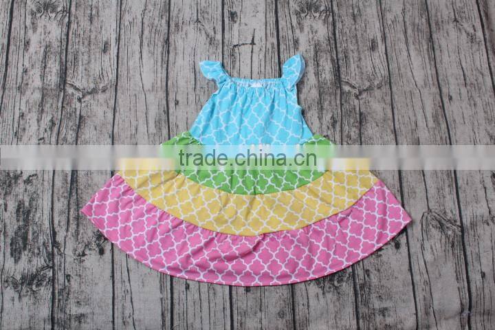 Yawoo Wholesale Designs Quatrefoil Flutter Sleeve Patchwork Dress Cotton Frocks for Teenage Girls