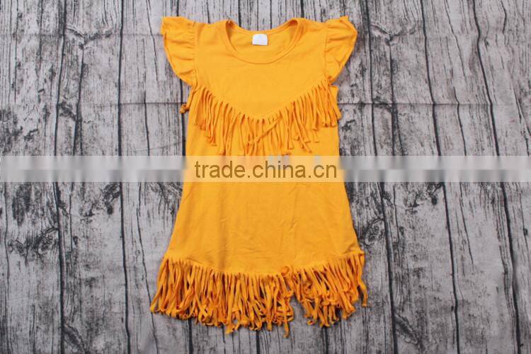 Yawoo 2017 Flutterl Sleeve Cotton Tassels Summer Dresses Latest Children Frocks Designs