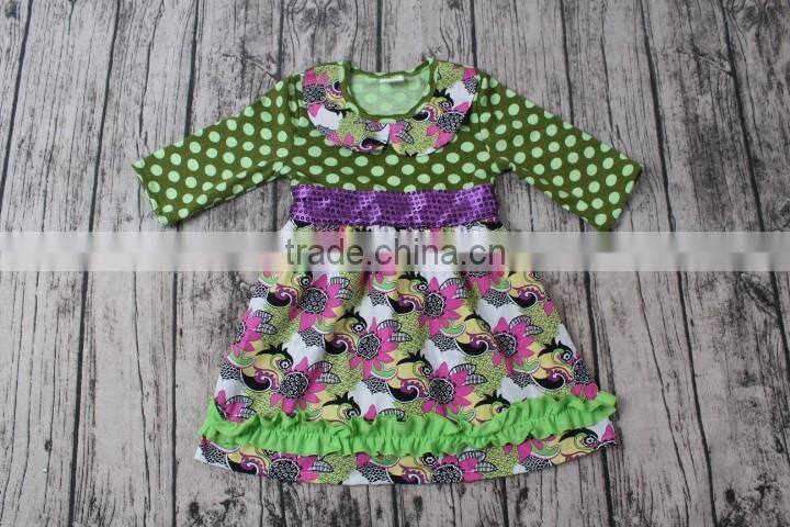 2016 Yawoo Latest Designs Flamingo Patterns Long Sleeve Girls Cotton Children Long Frocks Designs