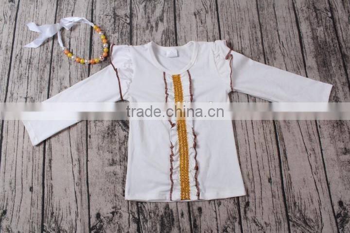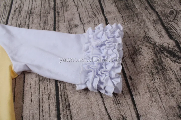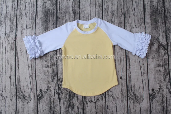 Yawoo hot sale wholesale yellow cotton ruffle raglan shirts toddler girl clothing