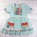 China Sale Custom Design Fashionable Blue Floral Girls Pearl Dress