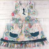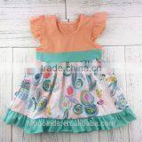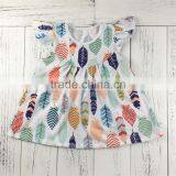 Factory Sale Custom Design Colorful Feather Pattern Kids Dresses