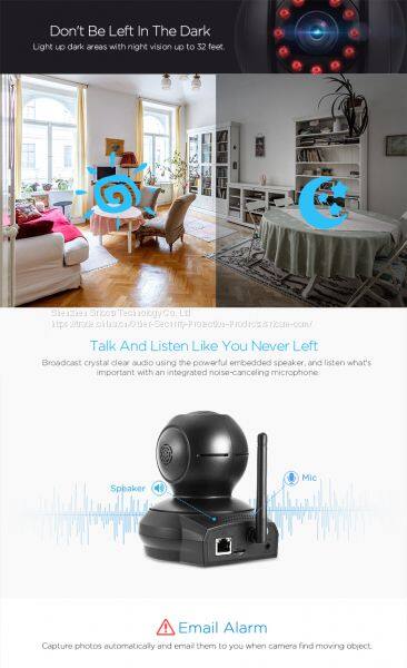 5: Alarm: Supports Motion detection alarm, Phone push alarm and Whistle alarm.
