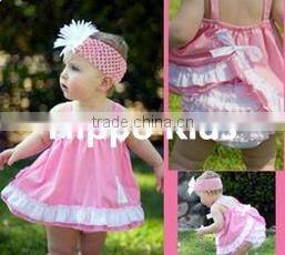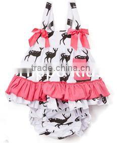 Wholesale Pink White Deer Dress and Diaper Cover Newborn Baby Swing Top Set Baby Clothing Sets