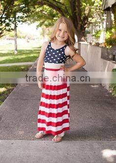New Style American National Dress Cotton Red Striped Maxi Dress 4th of July 10 Years Girls Dress