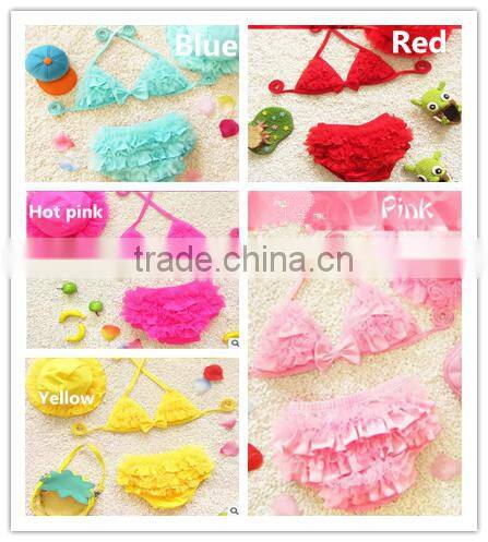 2017 Lace Ruffles Korea Style Baby Kids Bikini Fancy Girls Swimsuits 3pcs Infant Baby Swimwear