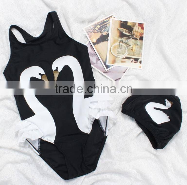 2017 Summer Girls Swimsuit Hot Sale Toddle Flamingo Swimwear Black Velvet Bathing Suit