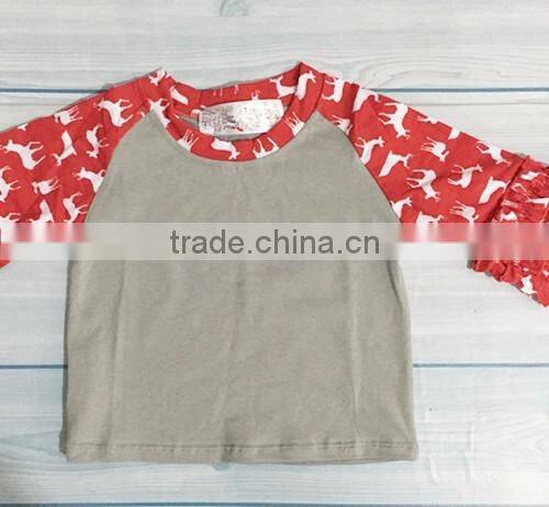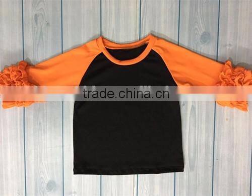 Children Shirts Raglan Shirt With Ruffle Sleeve Orange Kids t Shirt Latest Tops Designs Girls