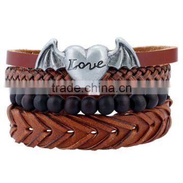 NEW Retro Angel Wing Heart Leather Charm Bracelet Plated DIY Braided Bangle 4 pack