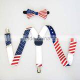 USA Flag Suspender and Bow Tie Set for Baby Toddler Kids Boys Girls Clip-on Suspenders Elastic Adjustable Y Braces