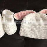 Cute Infant Newborn Baby Girl Boy Hand Knitted Crochet Bunny Ears Hat Shoes Costume Set Baby Photograph Props
