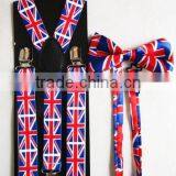 Envio Gratis 2017 Nueva Moda 2.5 cm Mens de Las Mujeres Del REINO UNIDO Bandera de Impresion Pajarita Y la Liga de Los Apoyos