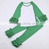 Christmas Clothing Ruffle Green Raglan Blanks Shirts With Icing Pants Outfits Clothes Sets