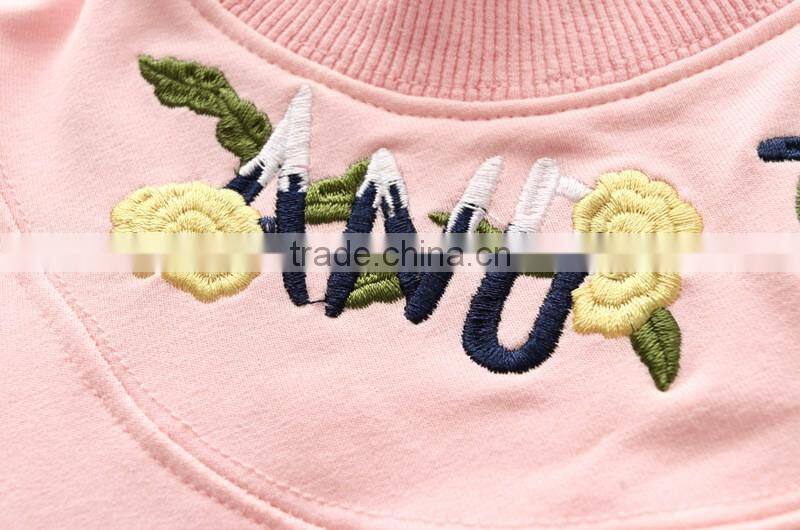 B22645A Autumn Sweet Girls Flower Embroidery Sweatshirts