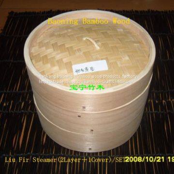 Bao Ning bamboo products produced steamer products: bamboo steamer, Liu fir steamer, a steamer of spruce, aspen steamer. Distinction: oval, square, handle steamer. The complete specifications 10cm, 13cm, 15cm, 18cm, 21cm, 24cm, 27cm, 30cm and so on. Word and branded product, such as: corporate logo, name of the manufacturer, etc.. All products are strictly in accordance with the standards promulgated by the Ministry of Health to perform production, and in accordance with the relevant provisions of the Entry-Exit Inspection and Quarantine Bureau of the product in 2003 to export to Japan, highly praise customers and friends who are interested, please call the contact. The two bottom of the product as a set, a cover