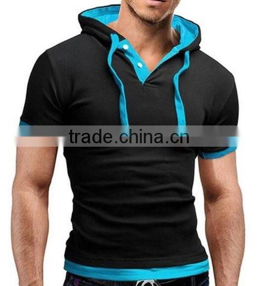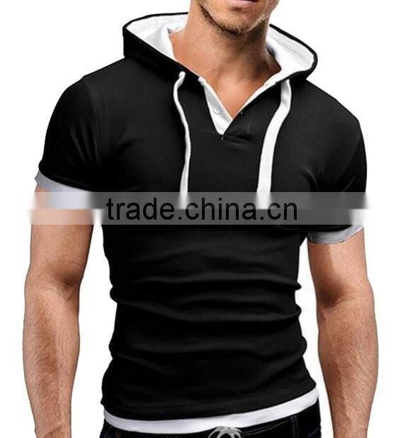 Factory OEM Services Short Sleeve High Quality Cheap Plain Two Tone Hoodie With Customized Logo