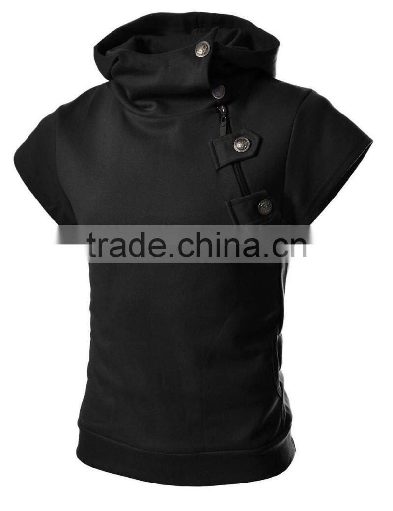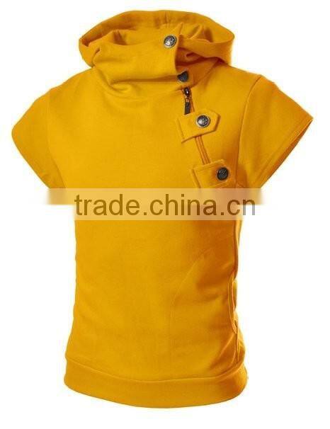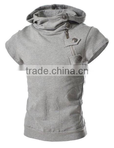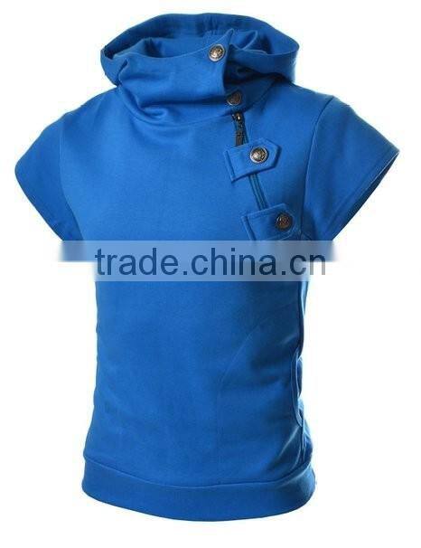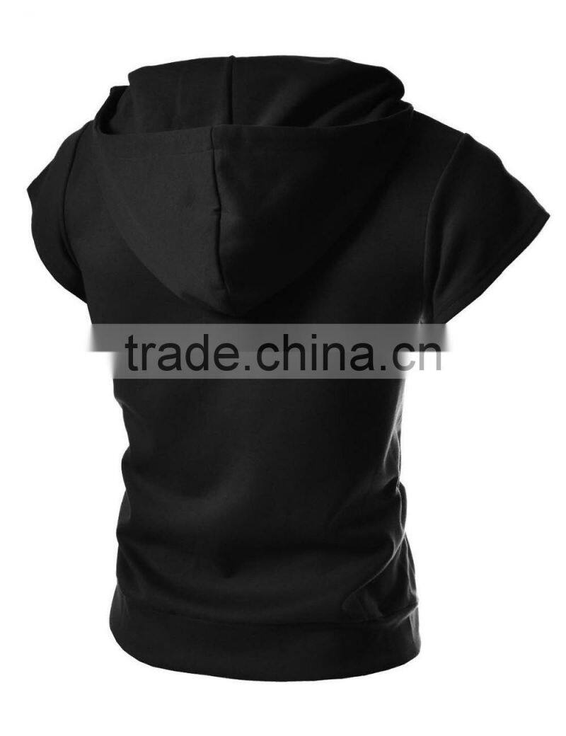 Fashion Style Women and Men Short Sleeve Zip up With Button Tall Fitness 80 Cotton 20 Polyester Hoodies Wholesale