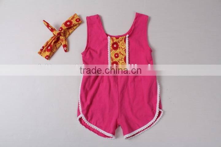 Newest Summer Style Customzied Hot Pink White Lace Ruffle Cotton Baby Girls Romper