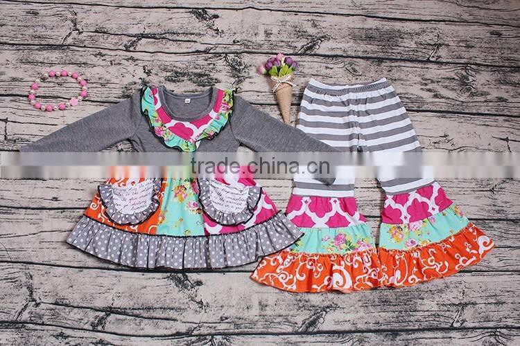 Autumn Long Sleeve Ruffles Children Clothes Stripes Fabric Girls Outfits Baby Clothing