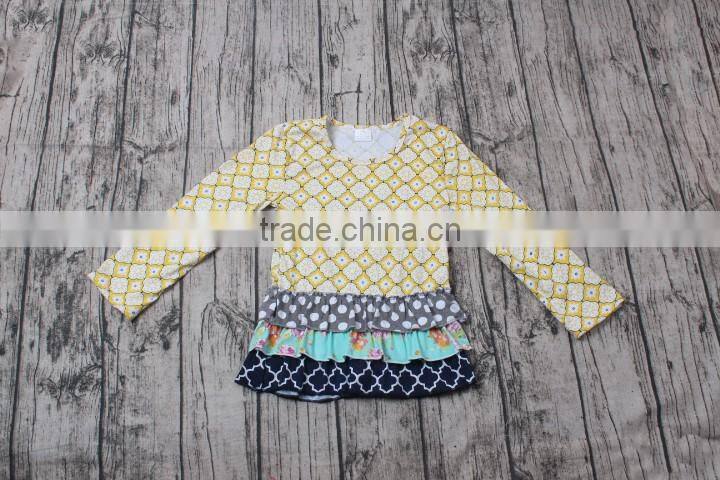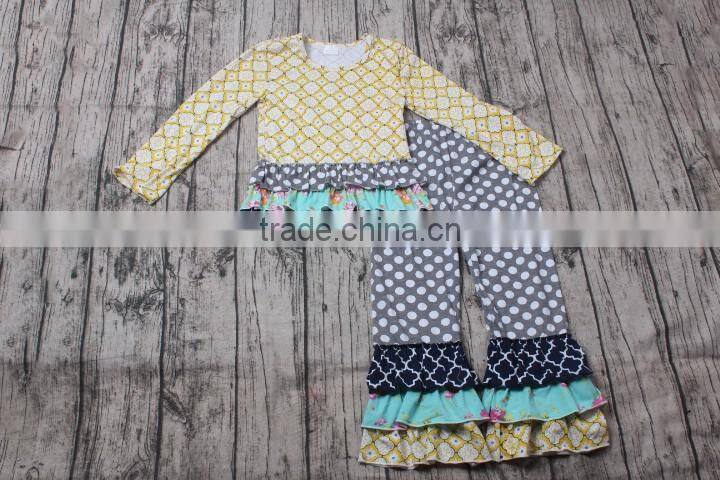 2017 boutique wholesale clothing market stripe multilayer ruffles dress match blank yellow pants kids reflective clothing