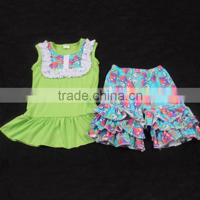 2017 Hot Sale Sleeveless Bibs Top Match Butterfly Ruffle Shorts Toddler Girls Outfits Newborn Outfits Children 2pcs Outfits